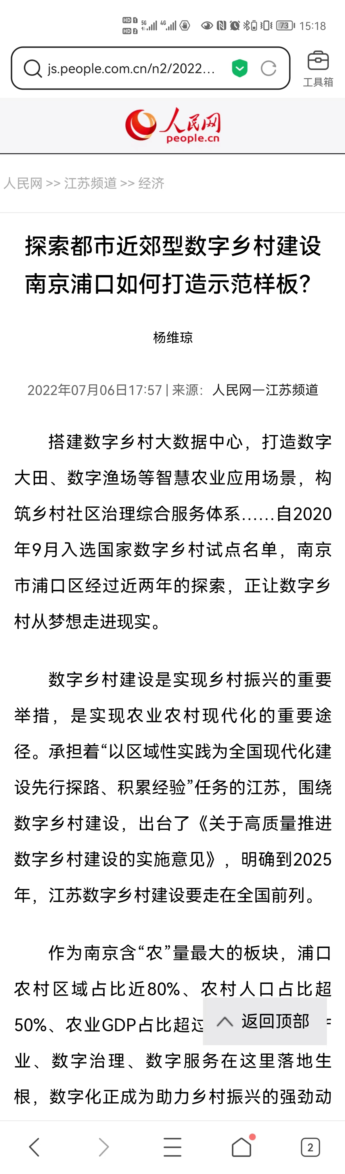 作为南京含“农”量最大的板块,浦口农村区域占比近80%、农村人口占比超50%、农业GDP占比超过10%,当数字产业、数字治理、数字服务在这里落地生根,数字化正成为助力乡村振兴的强劲动能。
