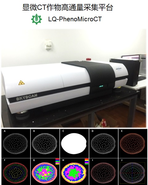 针对传统显微表型数据采集耗时费力、误差大,且指标单一等问题,北京农业信息技术研究中心构建了显微CT作物高通量采集平台,包括基于工业micro-CT的植物器官组织样品处理、扫描成像、显微表型特征智能解析,结合自主研发的显微表型分析软件,可进行高通量的植物籽粒、维管束等表型的数字化获取与智能化解析,实现了器官、组织等深层表型性状的高通量精准检测,具有支持大批量样本处理、指标多、精度高、效率高等特点,为维管束表型精准鉴定、种子资源的筛选和基因挖掘等提供显微表型大数据服务。